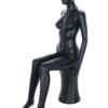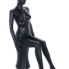 Full Body Egg Head Matt Black Female Economy Mannequin in a Seated Position.